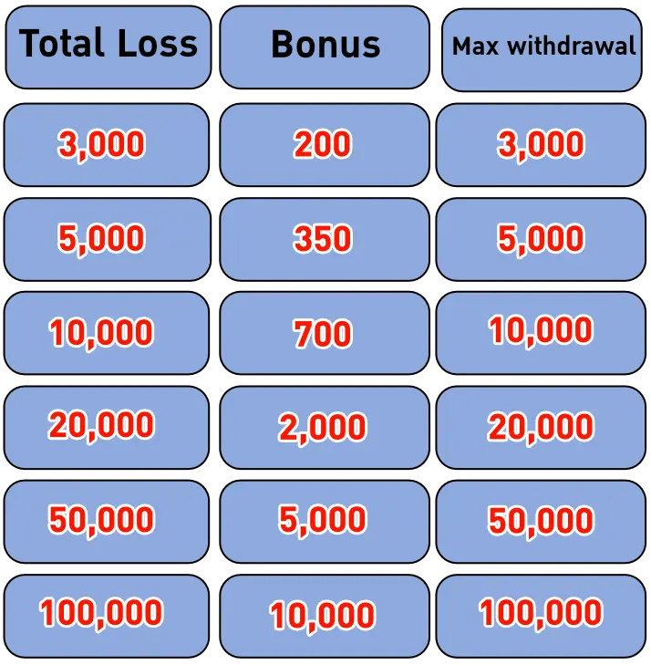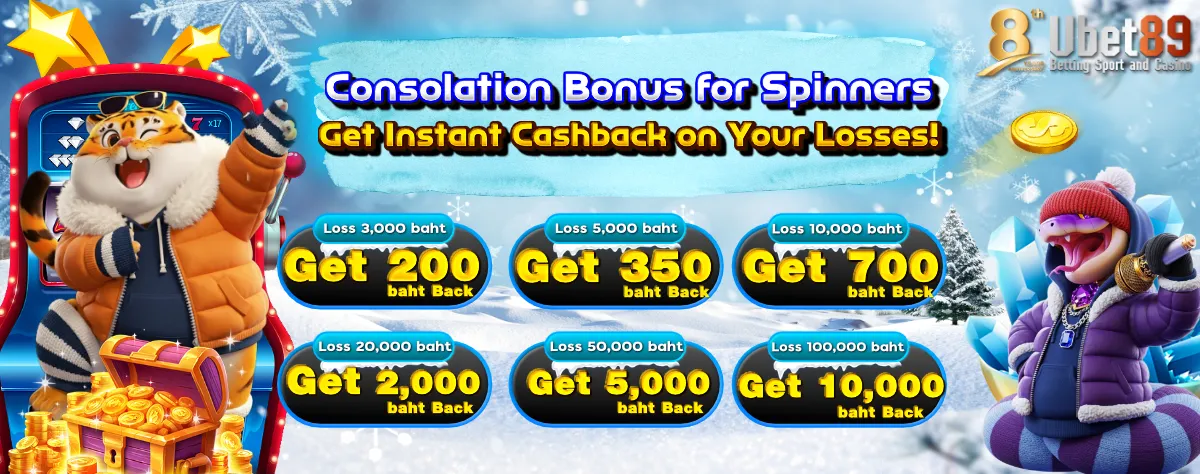 👉အႏွိမ့္ဆုံးေလာင္းေၾကးမွာ ဘတ္ 100 ႏွင့္အထက္ အႏွိမ့္ဆုံး ေလာင္းေၾကးပမာဏျဖင့္ 5 ႀကိမ္ဆက္တိုက္ရႈံးပါက ဘတ္ 100 ကိုျပန္အမ္းပါမည္။ ဤပ႐ိုမိုးရွင္းသည္ အမ်ားဆုံး ဘတ္ 20,000 ထိျပန္ေပးသည္။