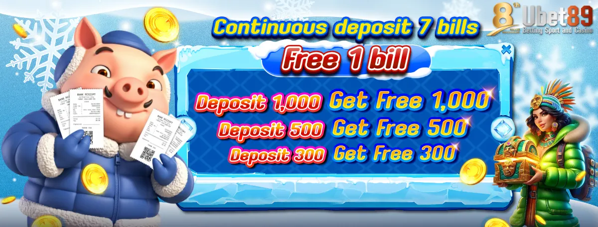 - သြင္းေငြ 500 - 7 ႀကိမ္ ဖရီး 1 ႀကိမ္ (ႀကိမ္ေရ 17,500 ျပည့္မွ ဖရီး 500 ဘတ္)