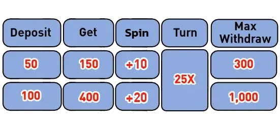 - ရရွိေသာေဘာနပ္သည္ 25 ႀကိမ္ေရ ကစားၿပီး အျမင့္ဆုံး 10,000 ဘတ္ ထုတ္ယူႏိုင္ပါသည္။